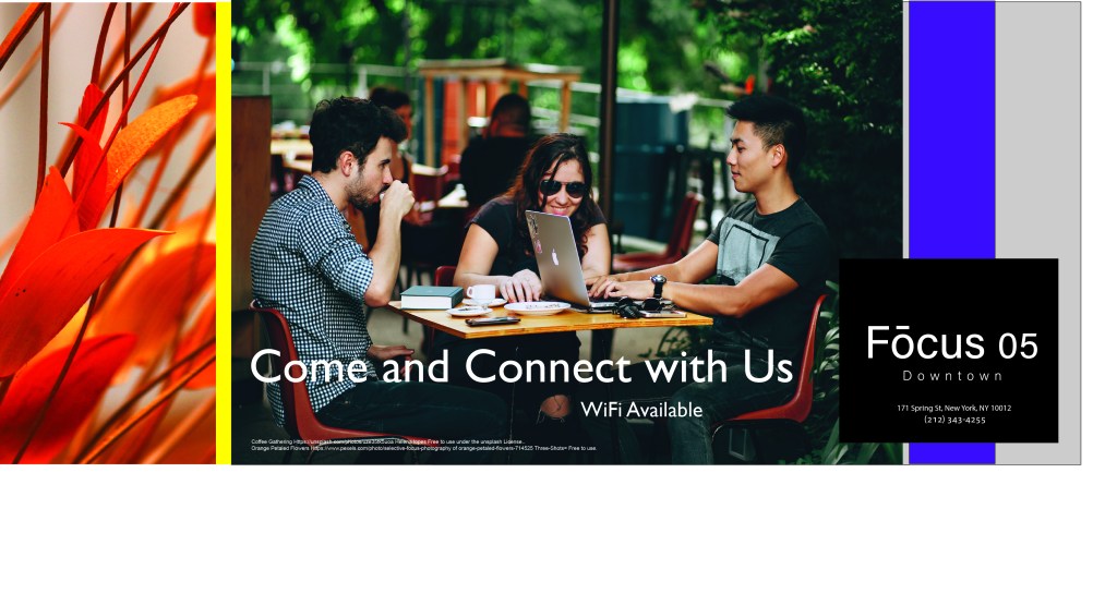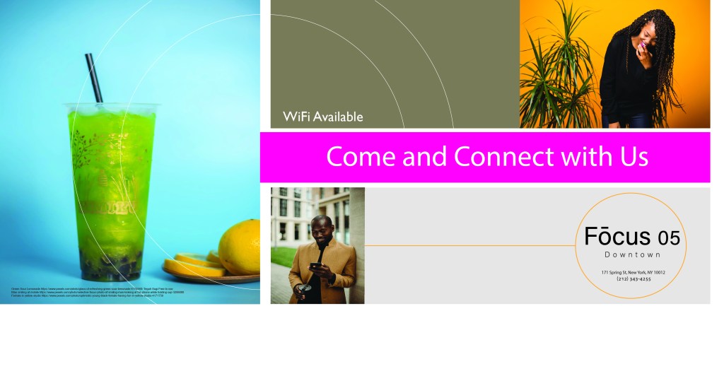 Billboard campaign for a new hang out spot in the subway. The target audience where millennials who want to visit with friends while using Wi-Fi on their portable device’s. Billboards were created in Adobe Illustrator.