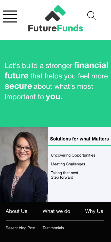 The is a campaign for a financial institution named Future Funds. This illustrates a webpage and what the page would look like in mobile format. Adobe UX was the program I used to create this ad. Focusing on the target audience, the branding of the company and messaging.